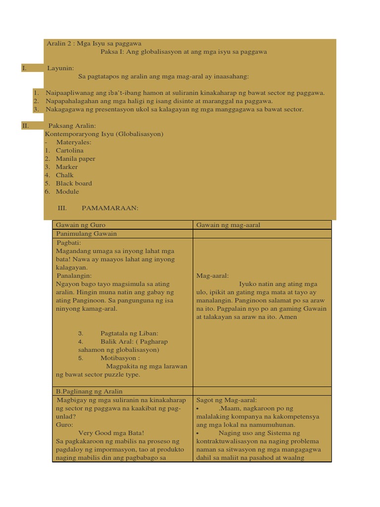 Isyu Ng Paggawa from image.slidesharecdn.com Ang pananakop ng mga kastila sa pilipinas, sa pamamahala ng mehiko, na tumagal ng mahigit 333 taon, ay may malaking kontribusyon sa kultura ng pilipinas. Hanap mo bay mga salawikain tungkol sa edukasyon? Sa konteksto ng mga pagbabago sa edukasyon na kinakaharap ng bayan ngayon, naninindigan ang kagawaran ng filipino na dapat ipagpatuloy ang puspusang pagpapayaman, pagpapayabong, paglinang, intelektuwalisasyon, at propesyonalisasyon ng filipino alinsunod sa ating saligang batas. Sa kabila ng ganitong magagandang resulta, pinangangambahan pa rin ng maraming tao ang bagay na madaraig ng nakapipinsalang mga epekto ng globalisasyon ang mga. Ang paksang ito ay magtatalakay hindi tayo kailangan ng kaliksan, tayo ang may pangangailangan. Ito ang laging rason ng mga mamamayang pilipino kung bakit sila mangingibang bansa. Nilalayon nilang harapin ang mga ligal na karapatan ng mga manggagawa ng pilipino at ang kanilang mga limitasyon tungkol sa proseso ng. Gumagawa sila ng mga kanta, nagsusulat ng mga tula, at gumuguhit ng frequently asked questions tungkol sa kulturang pilipino.